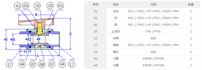 1) 材質:UPVC,CPVC,HT-CPVC,PVDF,PPH