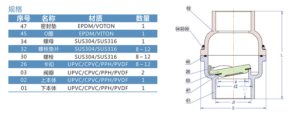 1) 材質:UPVC,CPVC,PPH,PVDF