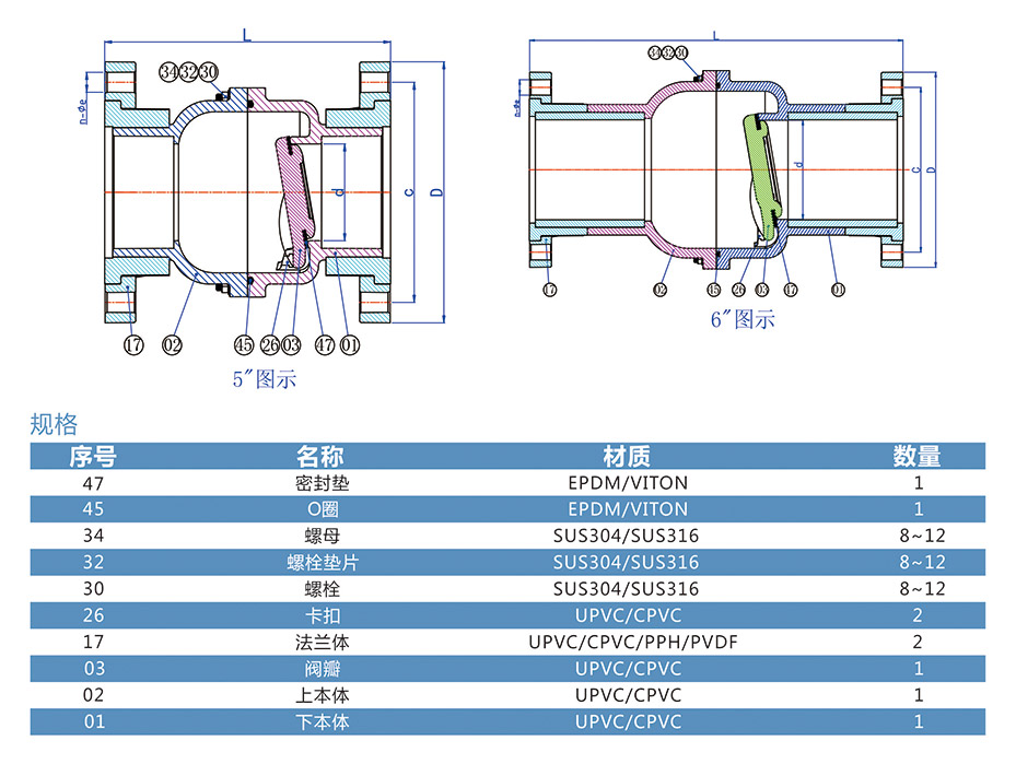1) 材質(zhì):UPVC,CPVC,PPH,PVDF