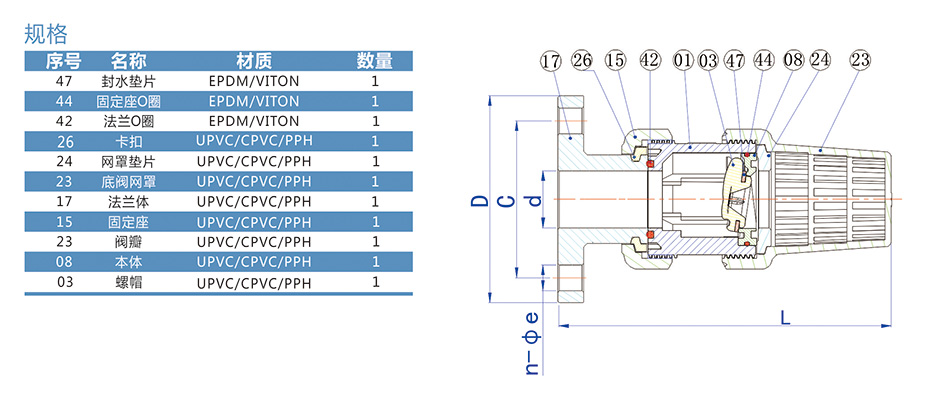 1) 材質:UPVC,CPVC,PPH,PVDF