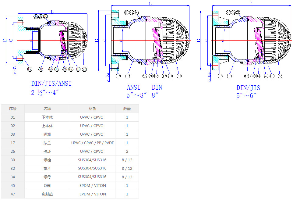 1) 材質: UPVC,CPVC,PPH,PVDF