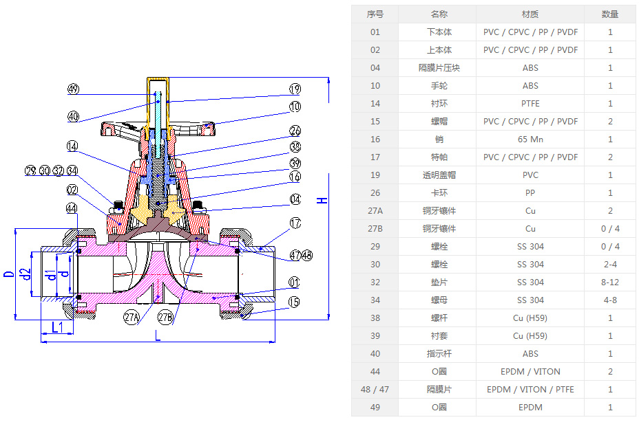 7) 本體顏色:UPVC(深灰色),CPVC(淺灰色),PPH(米黃色),Clear PVC(透明),PVDF(象牙色)