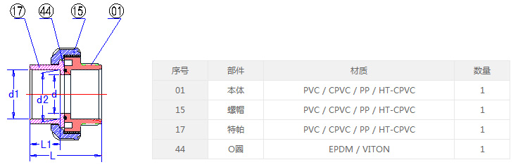 4) 材質和顏色 : PVC(深灰色/白色), CPVC(淺灰色), PP & HT-CPVC(米黃色)