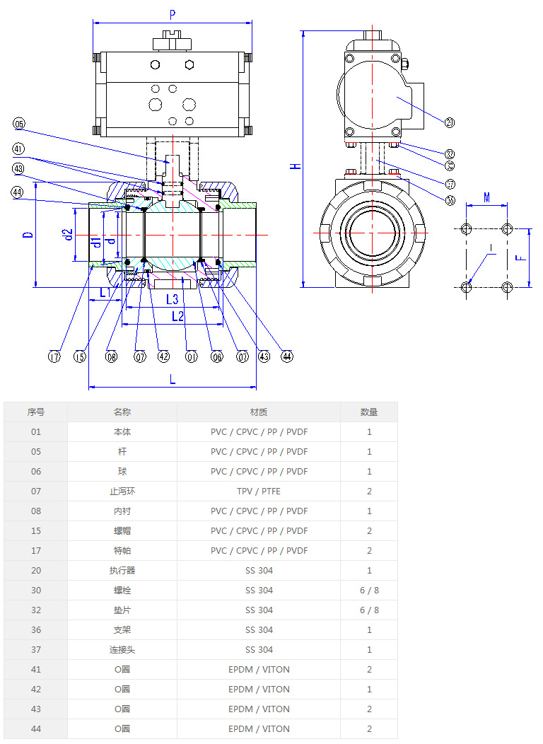 本體顏色:UPVC(深灰色),CPVC(淺灰色),PPH(米黃色),PVDF(象牙色)